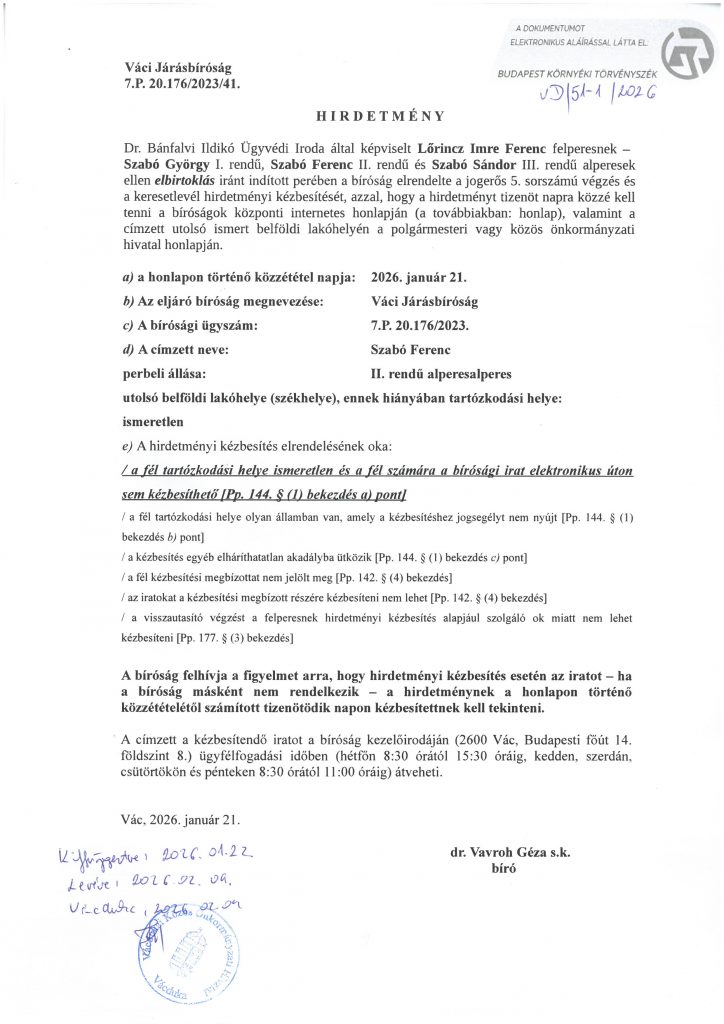 Vácdukai Közös Önkormányzati Hivatal KRID száma: