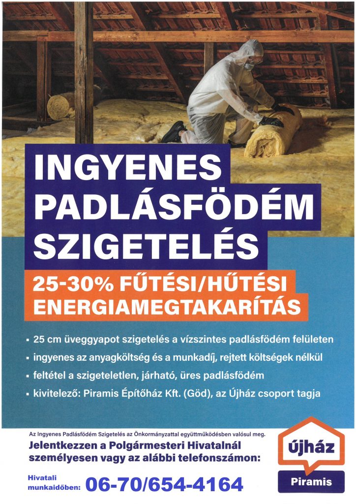 Örömmel tájékoztatjuk Önöket, hogy Vácdukán ingyenesen igényelhető a padlásfödém szigetelés, melyet az Önkormányzattal együttműködésben a gödi székhelyű Piramis Építőház Kft. építőanyag kereskedelmi vállalkozás végez, az Újház csoport tagjaként.