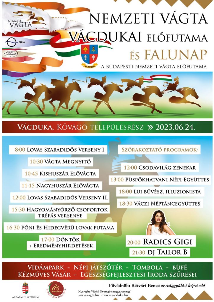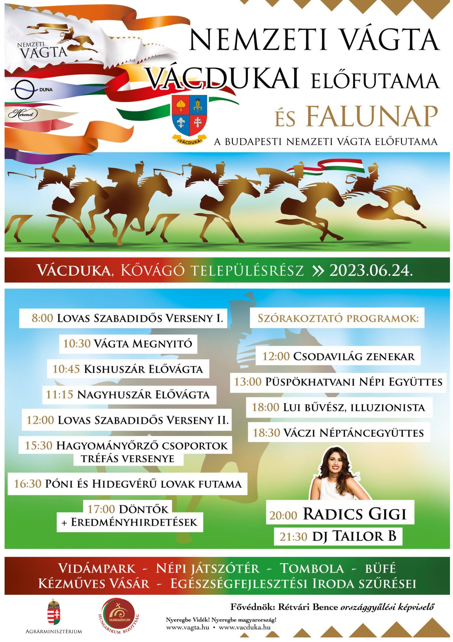 Sok szeretettel várunk minden kedves érdeklődőt 2023. június 24-én tartandó Nemzeti Vágta Vácdukai Előfutamára és Falunapra.
